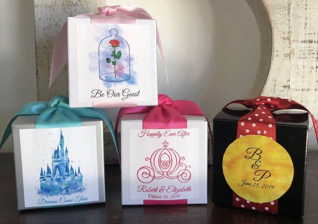 Each wedding location means something different to each bride, and so should each detail. Finding custom Disney favors to tie in with a Disney wedding can be expensive, and difficult to find. However, B. toffee offers custom Disney boxes that can be personalized to coordinate with your favorite characters from the beloved stories on your magical day. This will leave your guests with something sweet and delicious to take home that embodies the magic of the day.